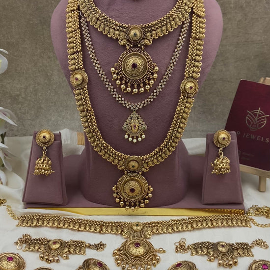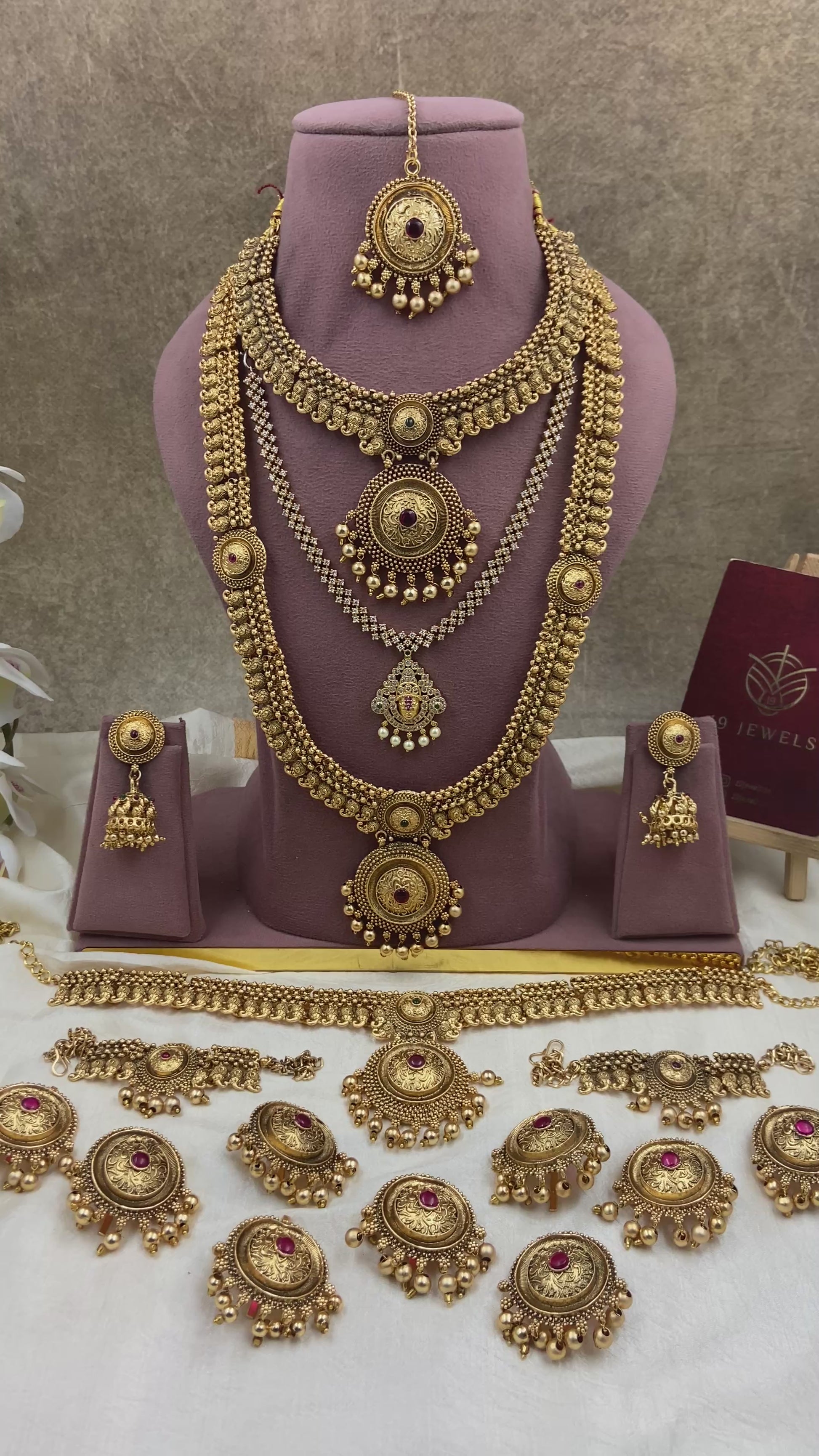 This full bridal jewellery set, known as , is the perfect addition to any wedding ensemble. Made with the highest quality materials, including precious stones and metals, this set exudes elegance and luxury. With its stunning design and craftsmanship, it is sure to make any bride feel like a princess on her special day.