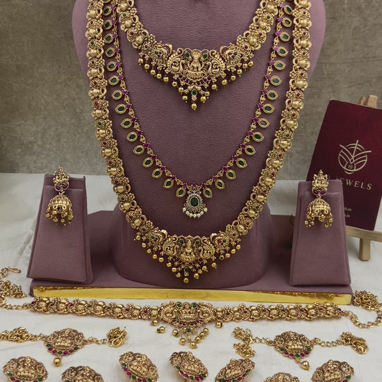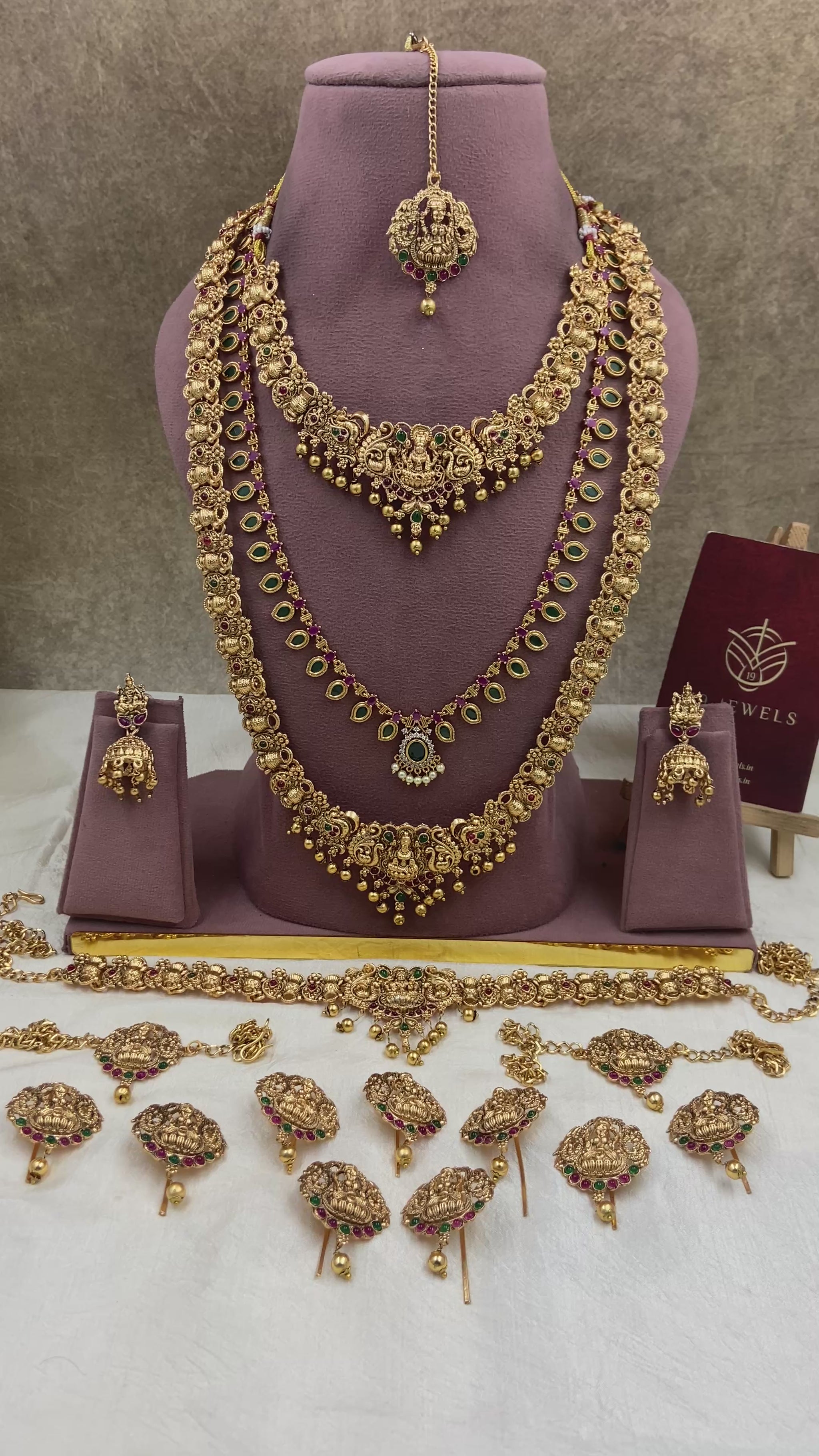 This full bridal jewellery set, offers elegant and luxurious accessories for your special day. With its intricate designs and high-quality materials, it will complement any wedding gown and provide the perfect finishing touches for a stunning bridal look.