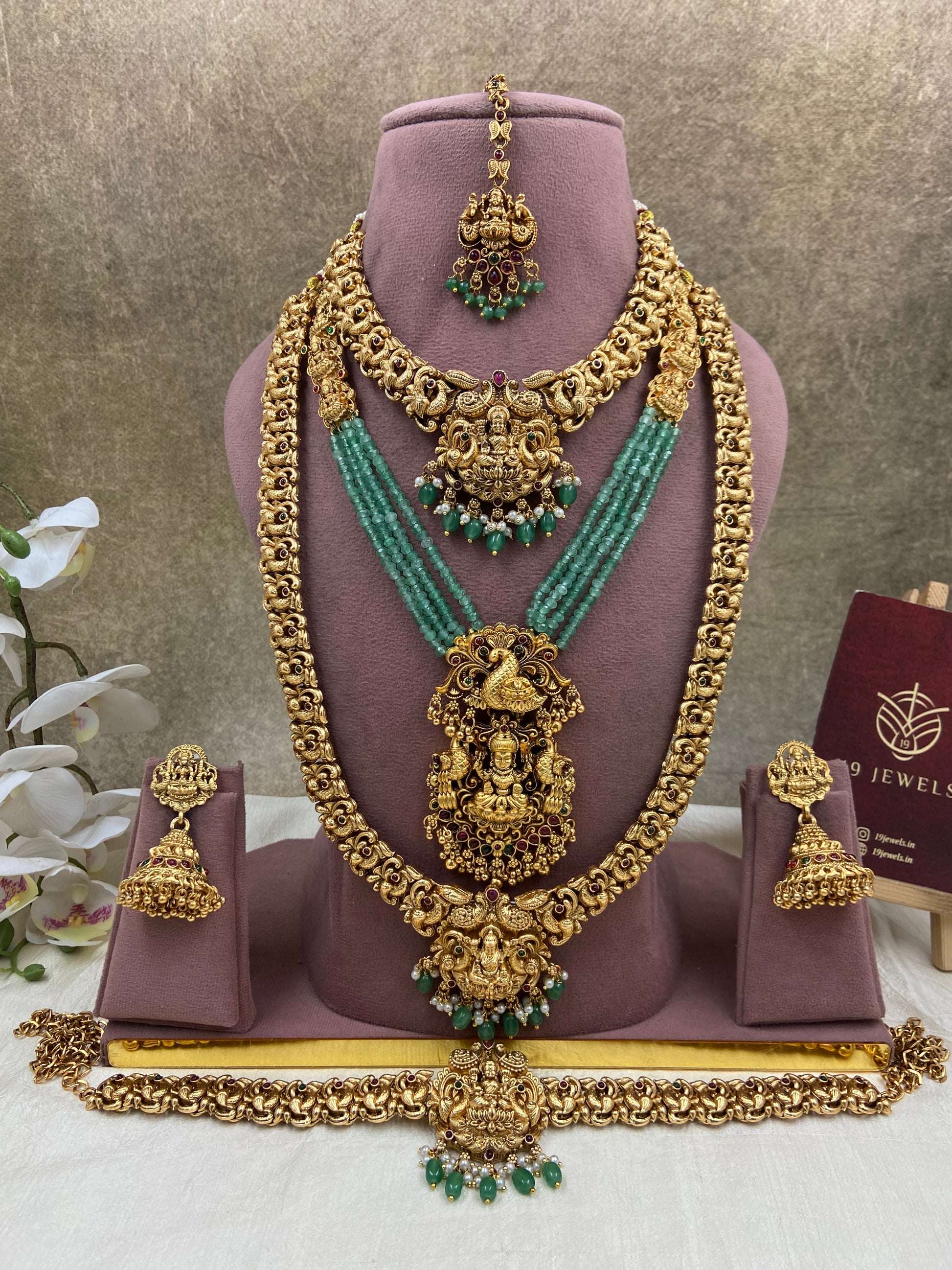 Add a touch of elegance to your wedding attire with our Green Beaded Semi Bridal Jewellery . Made from high-quality materials and featuring a stunning design, this piece will surely make you stand out on your special day. With its intricate details and impeccable craftsmanship, it's the perfect choice for any semi-bridal look.