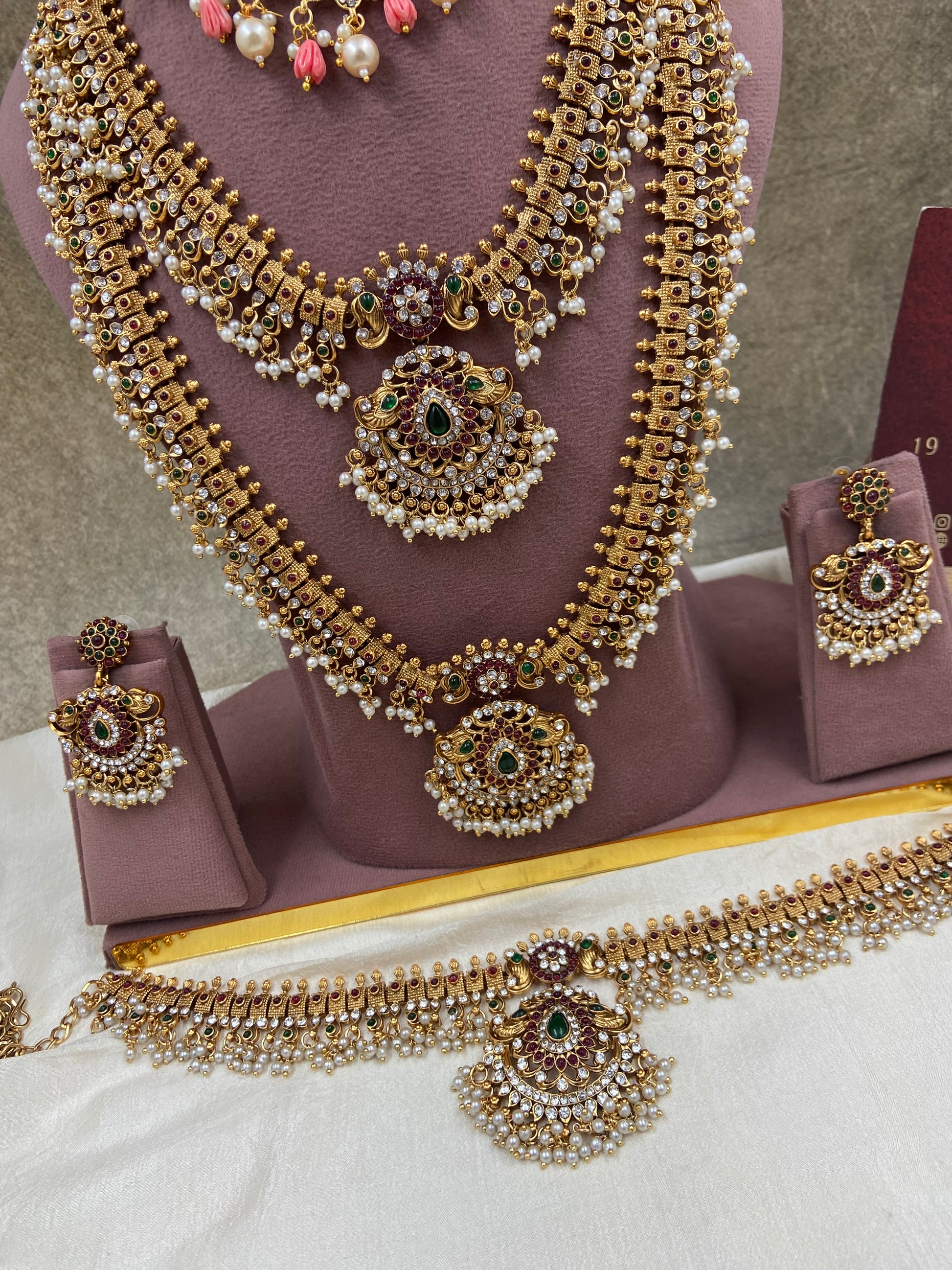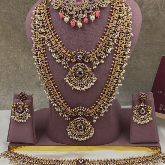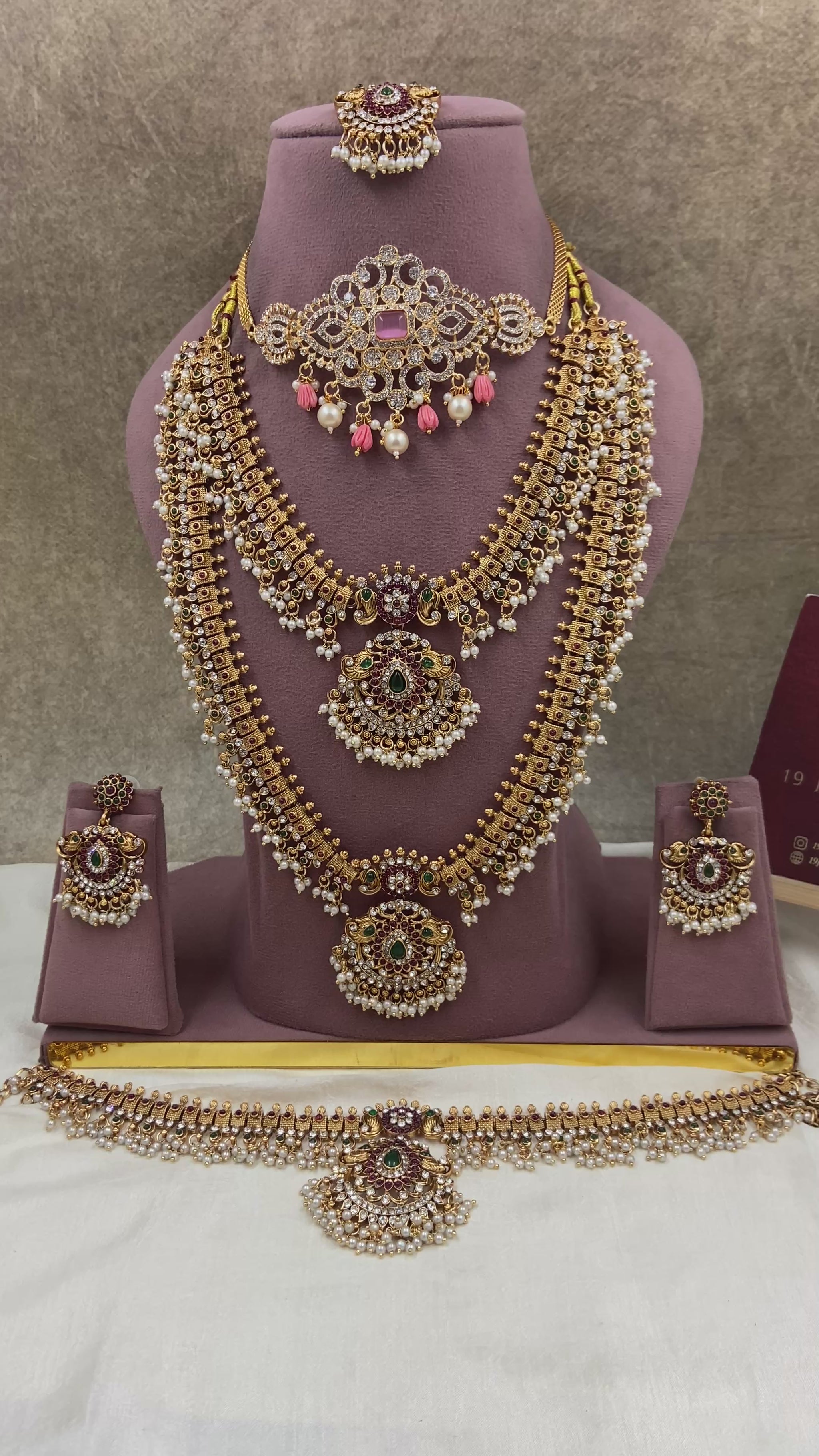 This Gutapussalu semi bridal jewellery is perfect for adding a touch of elegance to any occasion. The semi-bridal design showcases traditional craftsmanship, making it a timeless piece. Elevate your style with this stunning accessory, guaranteed to make a statement.