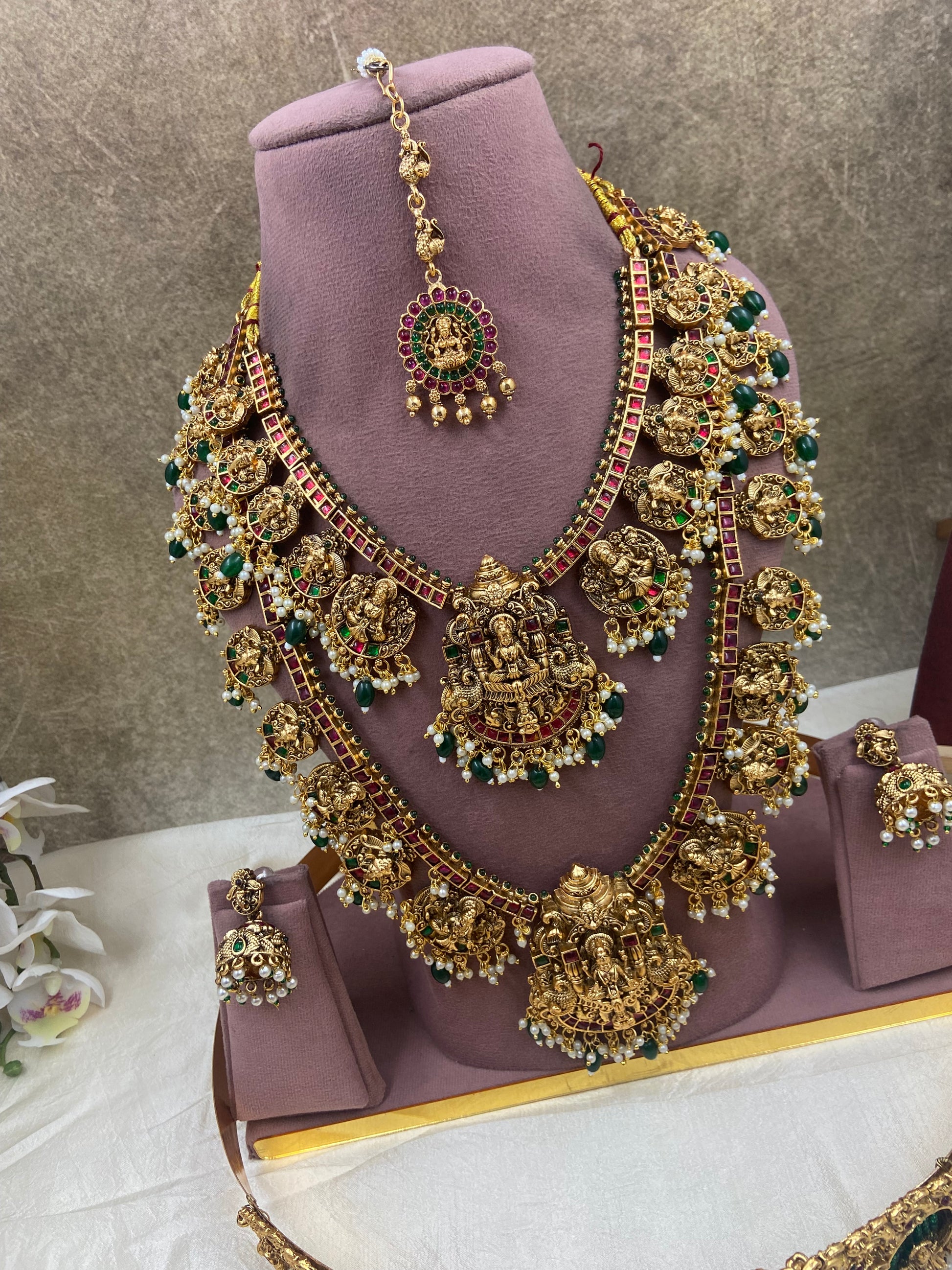 Enhance your bridal look with Gutapussalu semi bridal jewellery . Made with high quality semi-precious stones, this jewellery is designed to add a touch of elegance and sophistication to your special day. Experience the beauty and tradition of Gutapussalu craftsmanship in every piece.