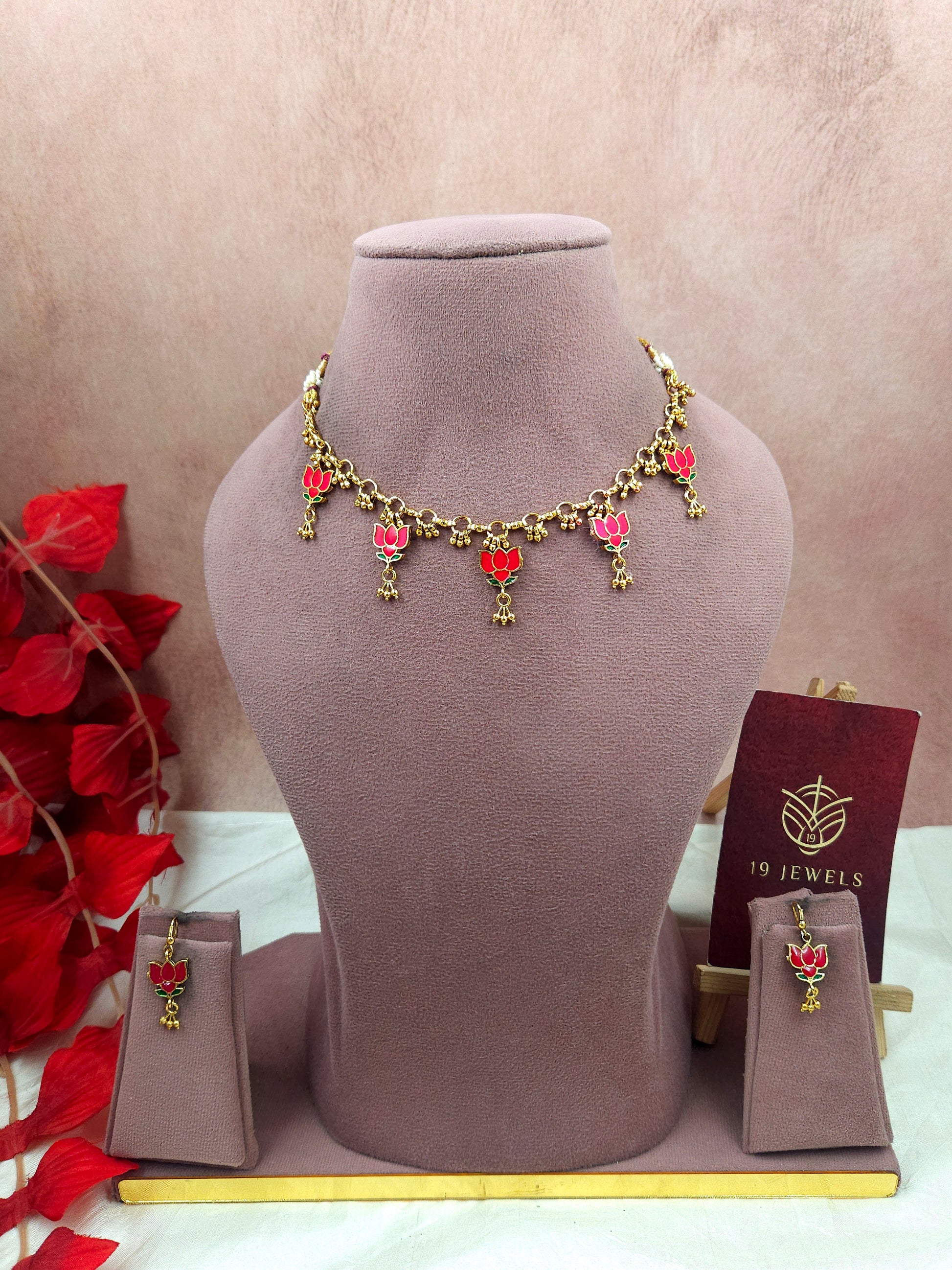 Introducing the Lotua necklace. Crafted with delicate precision and adorned with intricate detail, this necklace is a beautiful addition to any outfit. The perfect combination of timeless elegance and modern design, it is sure to make a statement. Elevate your style with this stunning necklace.