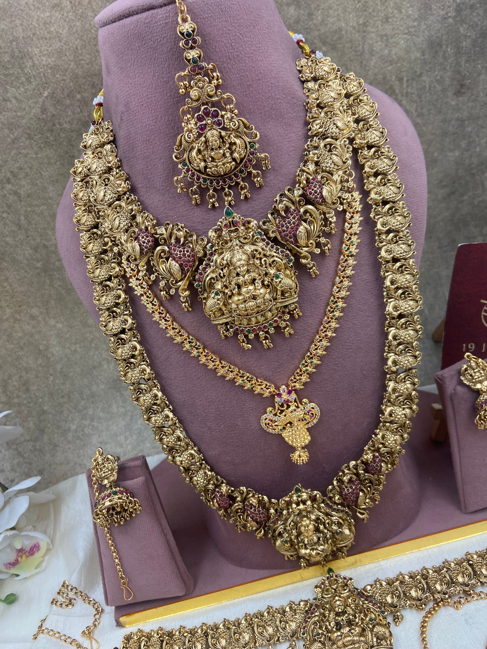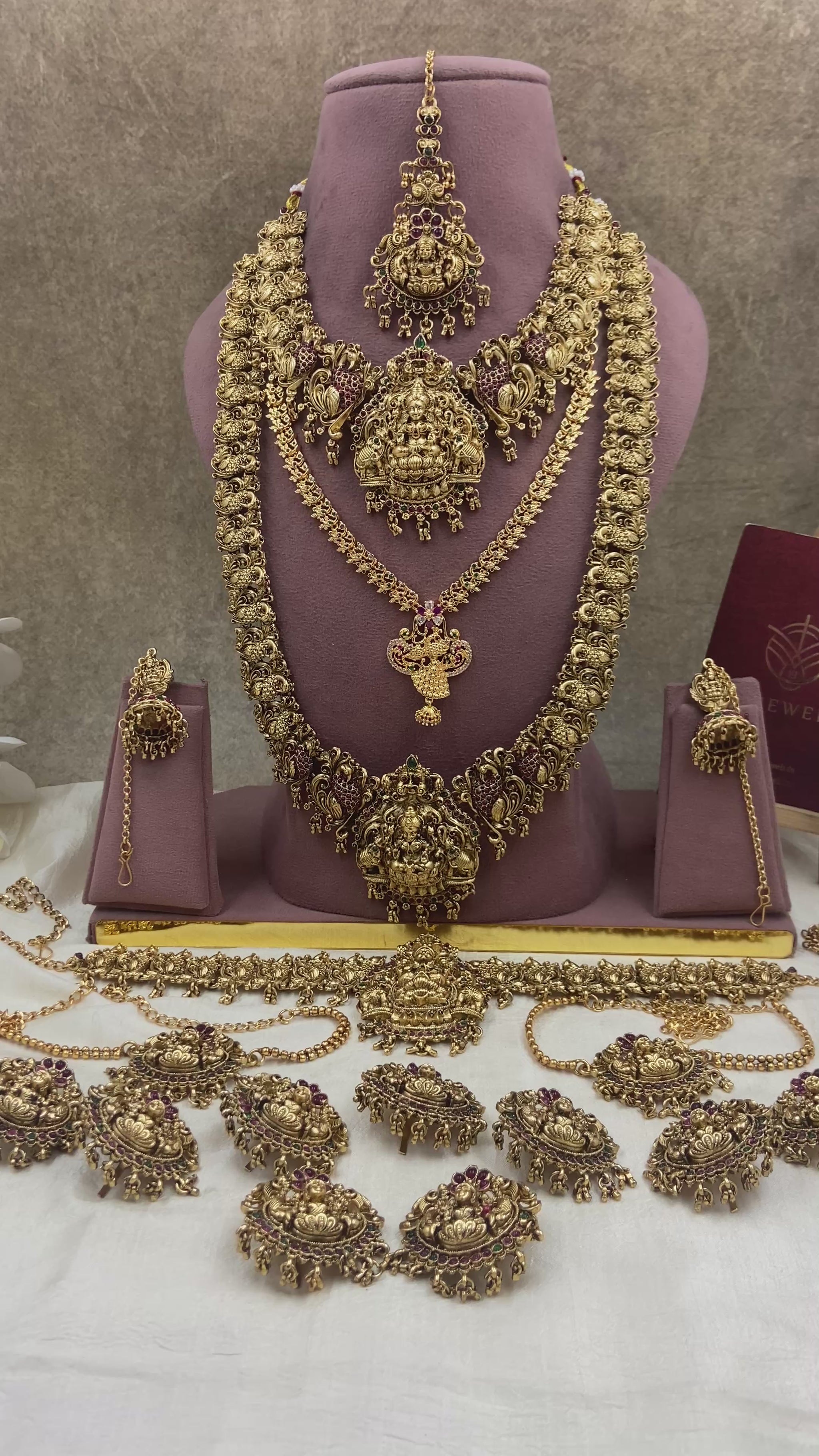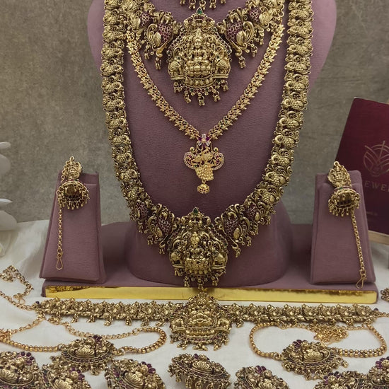This stunning Nakshi full bridal jewellery is the perfect touch for any bride. Made with exquisite attention to detail, the Bridal Jew features intricate designs and high-quality materials that will add elegance and sophistication to your special day. Expertly crafted for a flawless look.