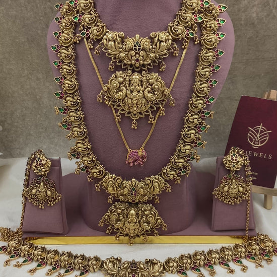 Introducing our Nakshi semi bridal jewellery for your special day. Made with high-quality materials and expert craftsmanship, this semi bridal set adds elegance and sophistication to your wedding look. Elevate your style with this stunning piece of jewellery.