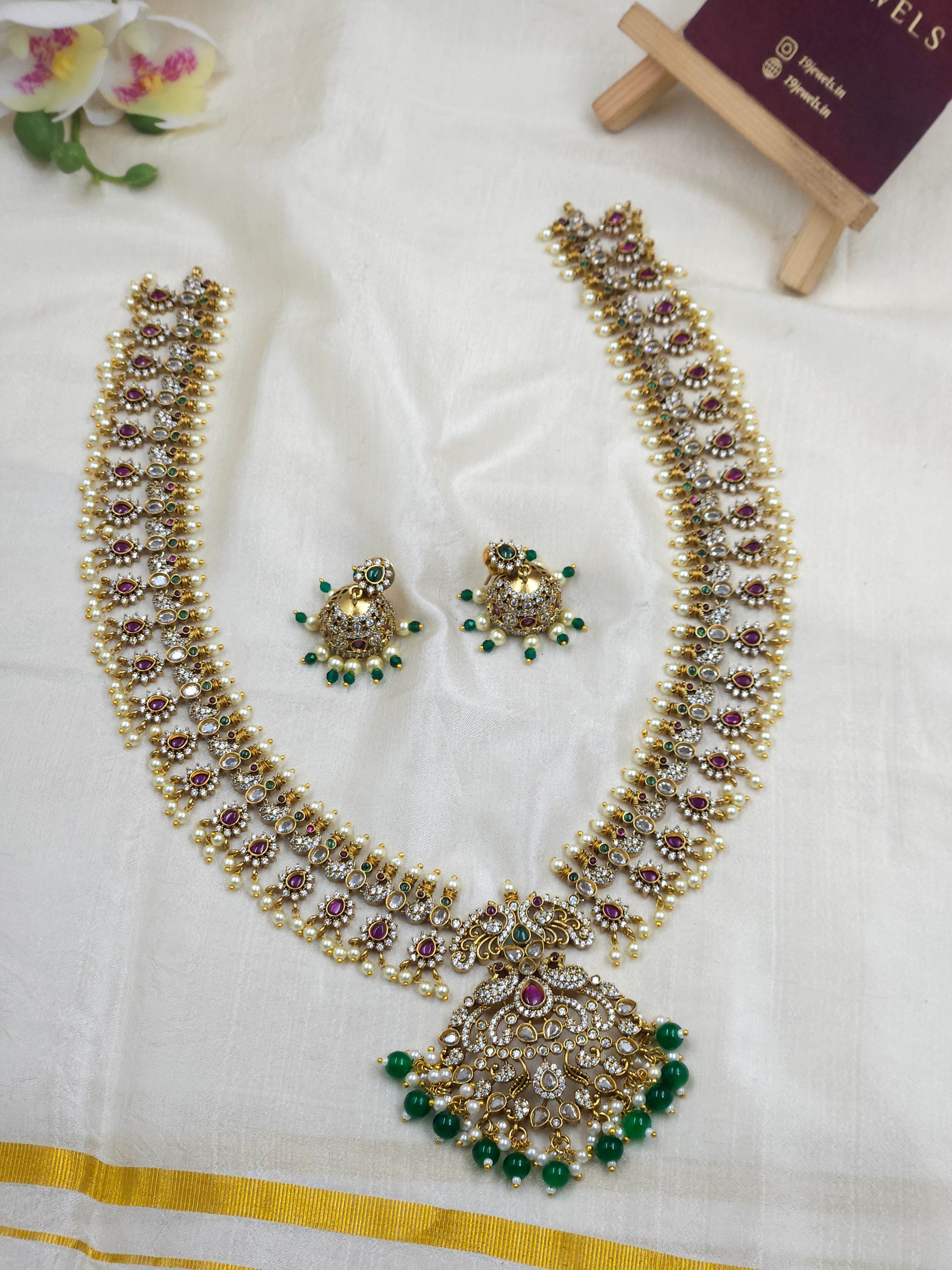 This premium quality necklace, known as gutapussalu haram N1087, offers a touch of elegance to any outfit. Made with the finest materials, it exudes luxury and sophistication. Its intricate design adds a unique and timeless charm. Upgrade your style with this statement piece.