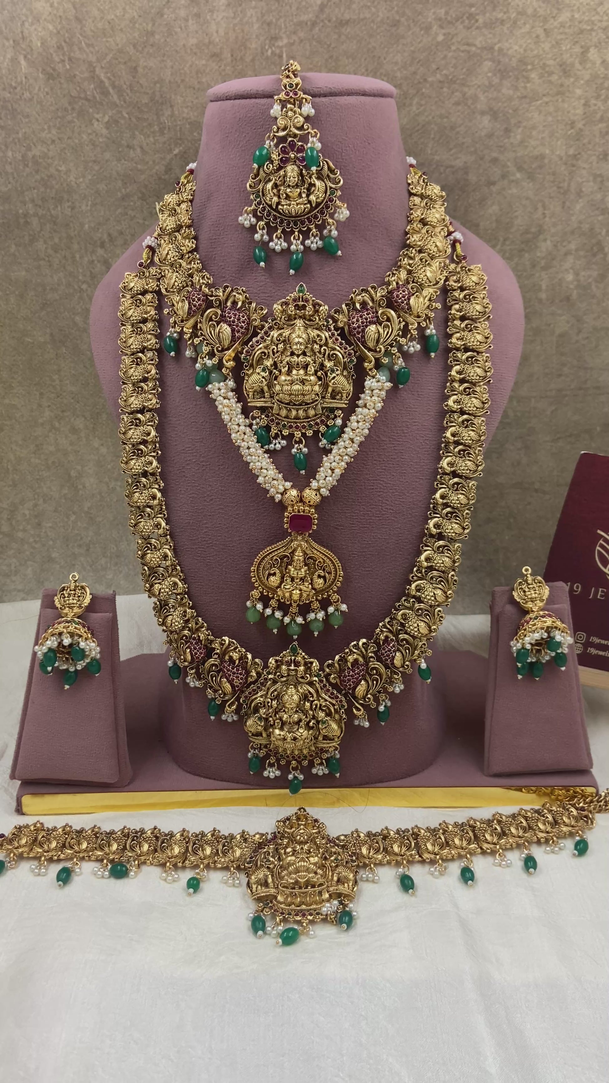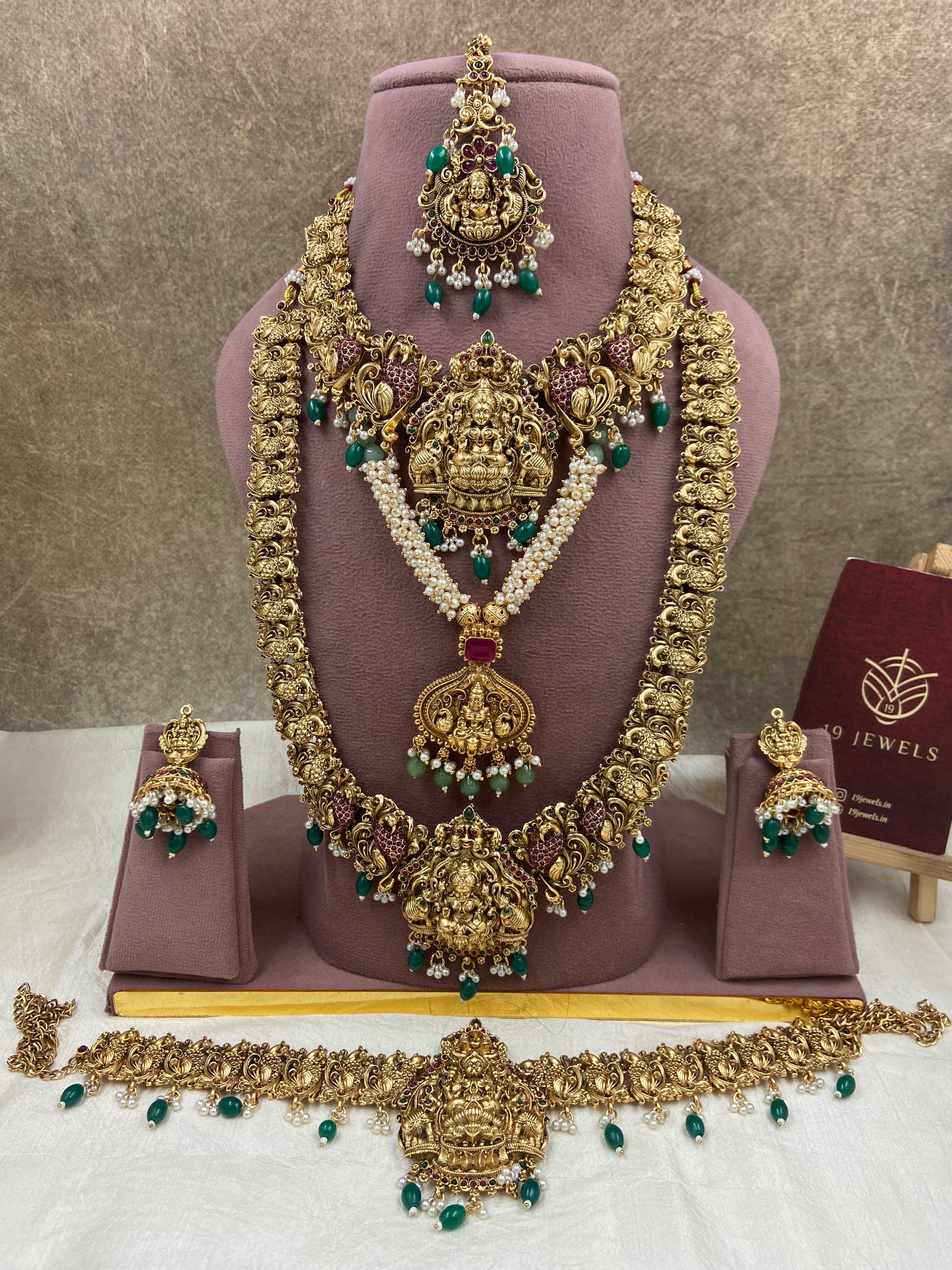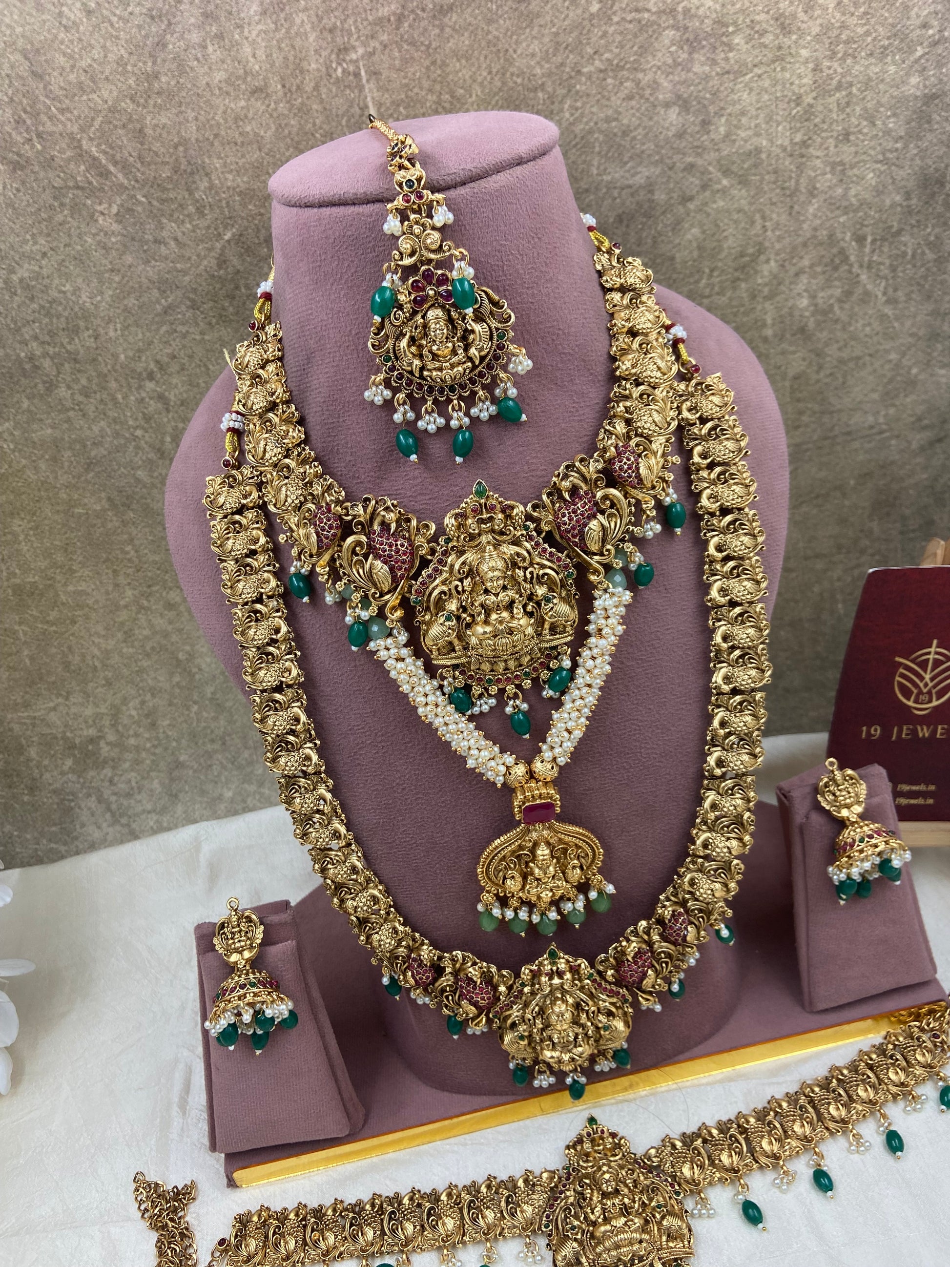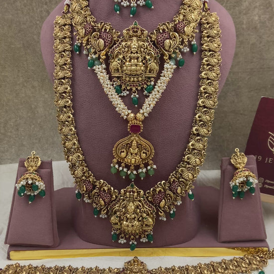 This Semi bridal jewellery is a stunning piece that adds elegance and charm to any bridal ensemble. Made with high-quality materials, it exudes a sense of luxury while complementing the bride's beauty. Perfect for a semi-formal wedding, it showcases the bride's unique style with a touch of traditional flair.