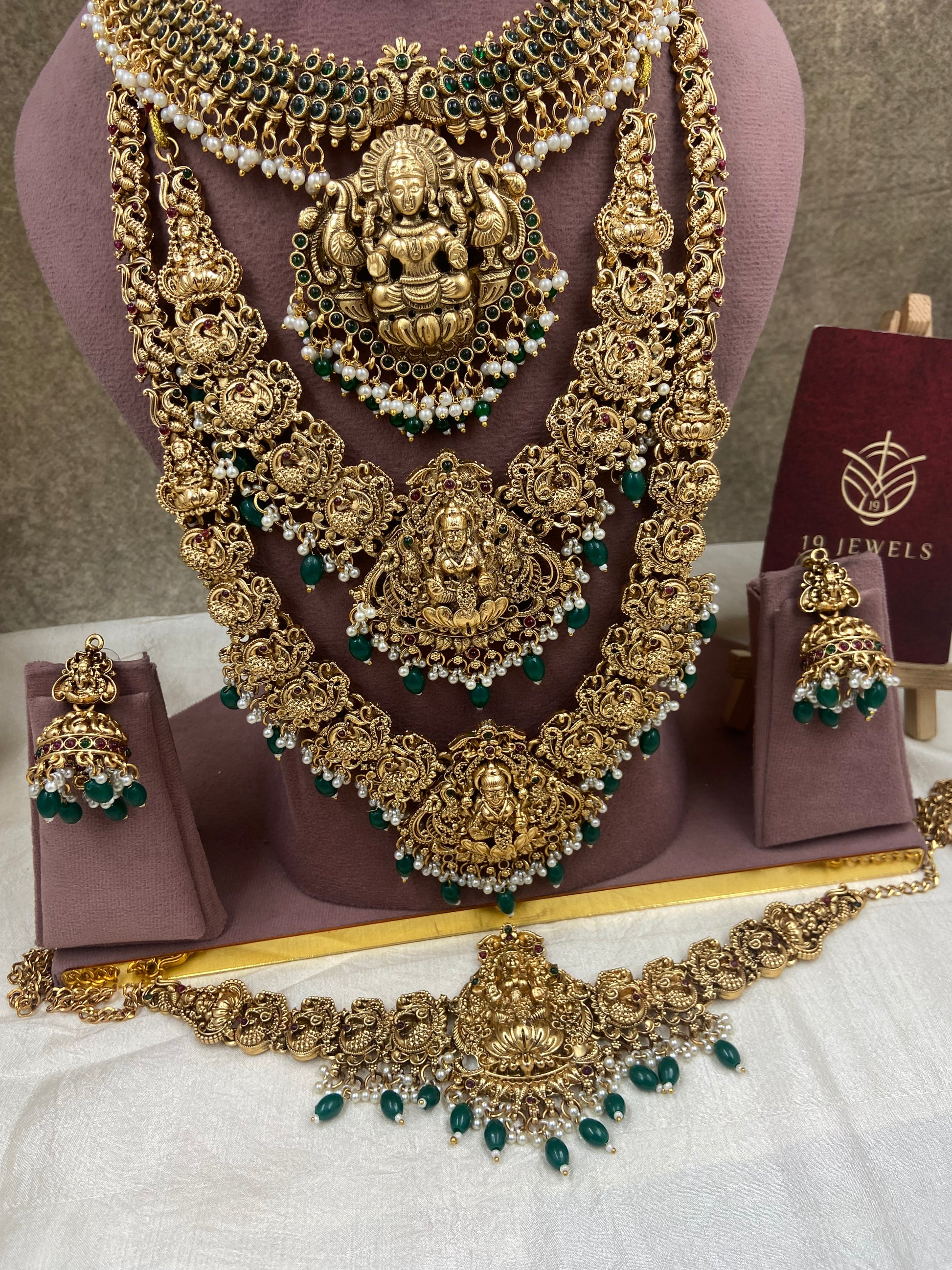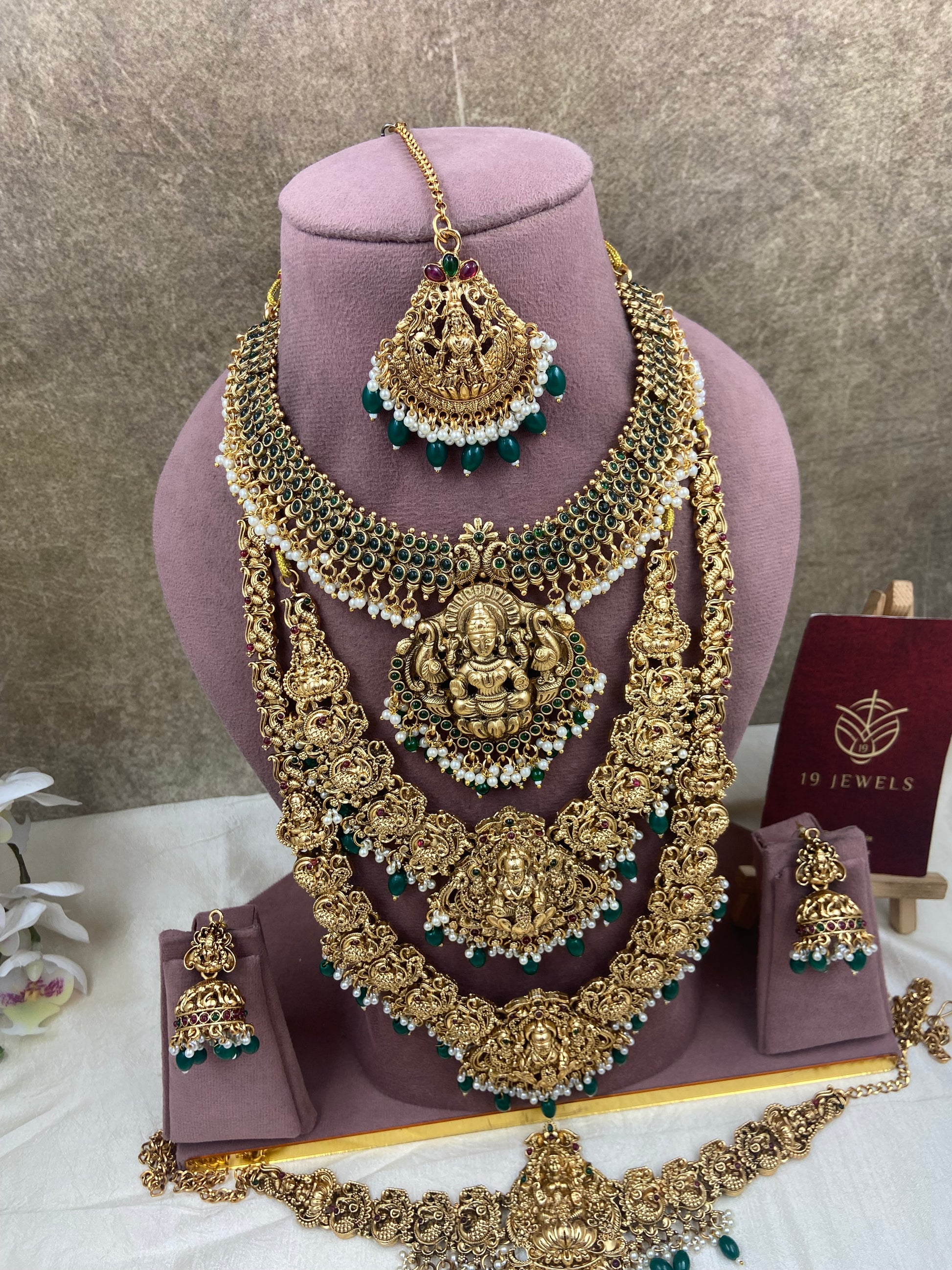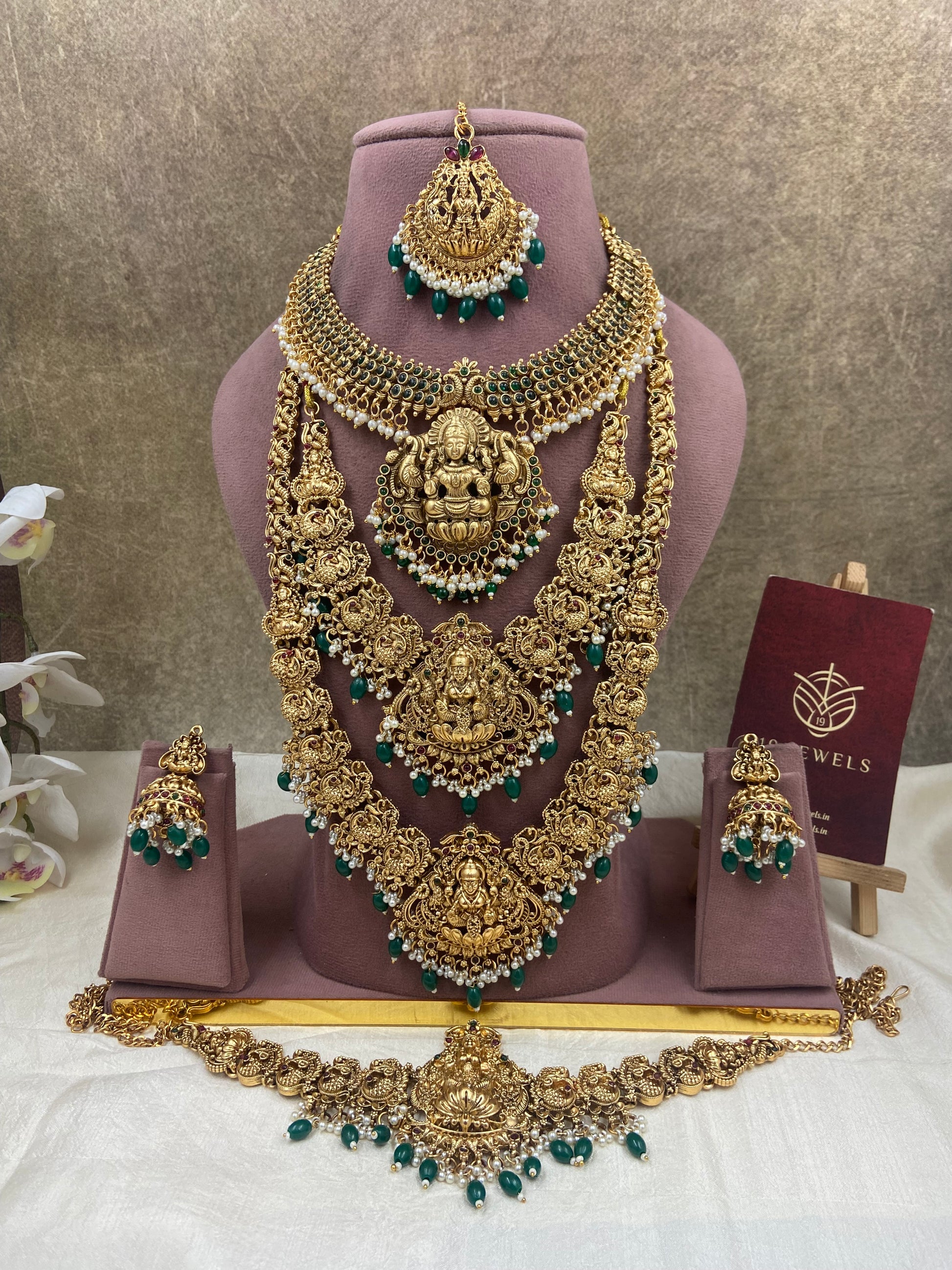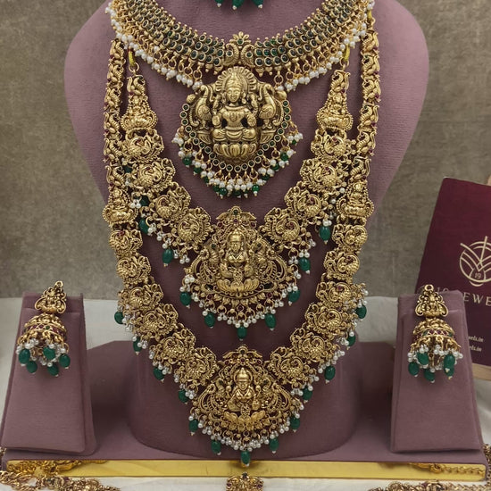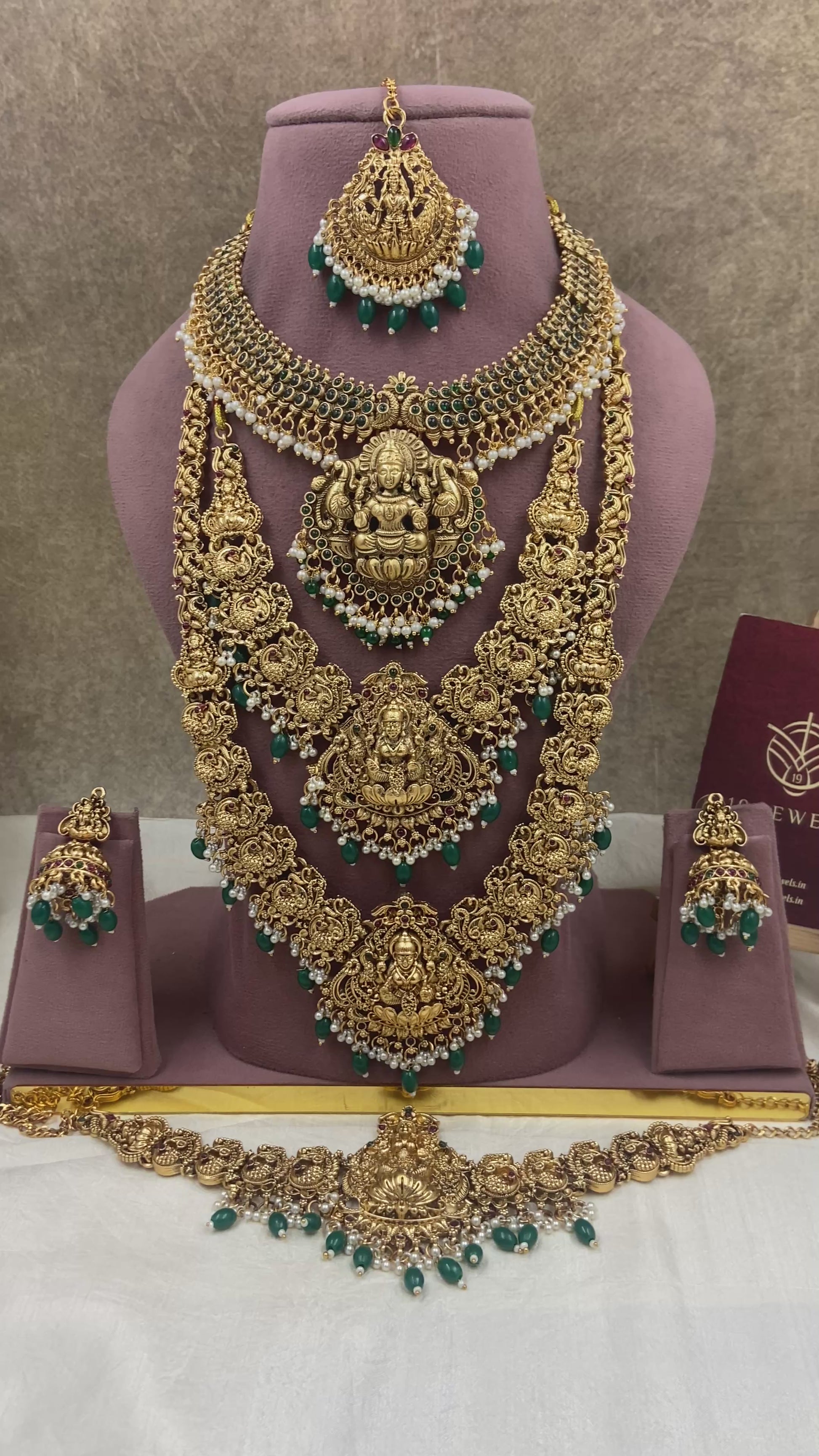 This semi bridal jewellery is the perfect addition to your wedding ensemble. Crafted with intricate details and high-quality materials, it exudes elegance and sophistication. The semi-precious stones and delicate design add a touch of glamour, making it a must-have for any bride. Elevate your look with this stunning piece.
