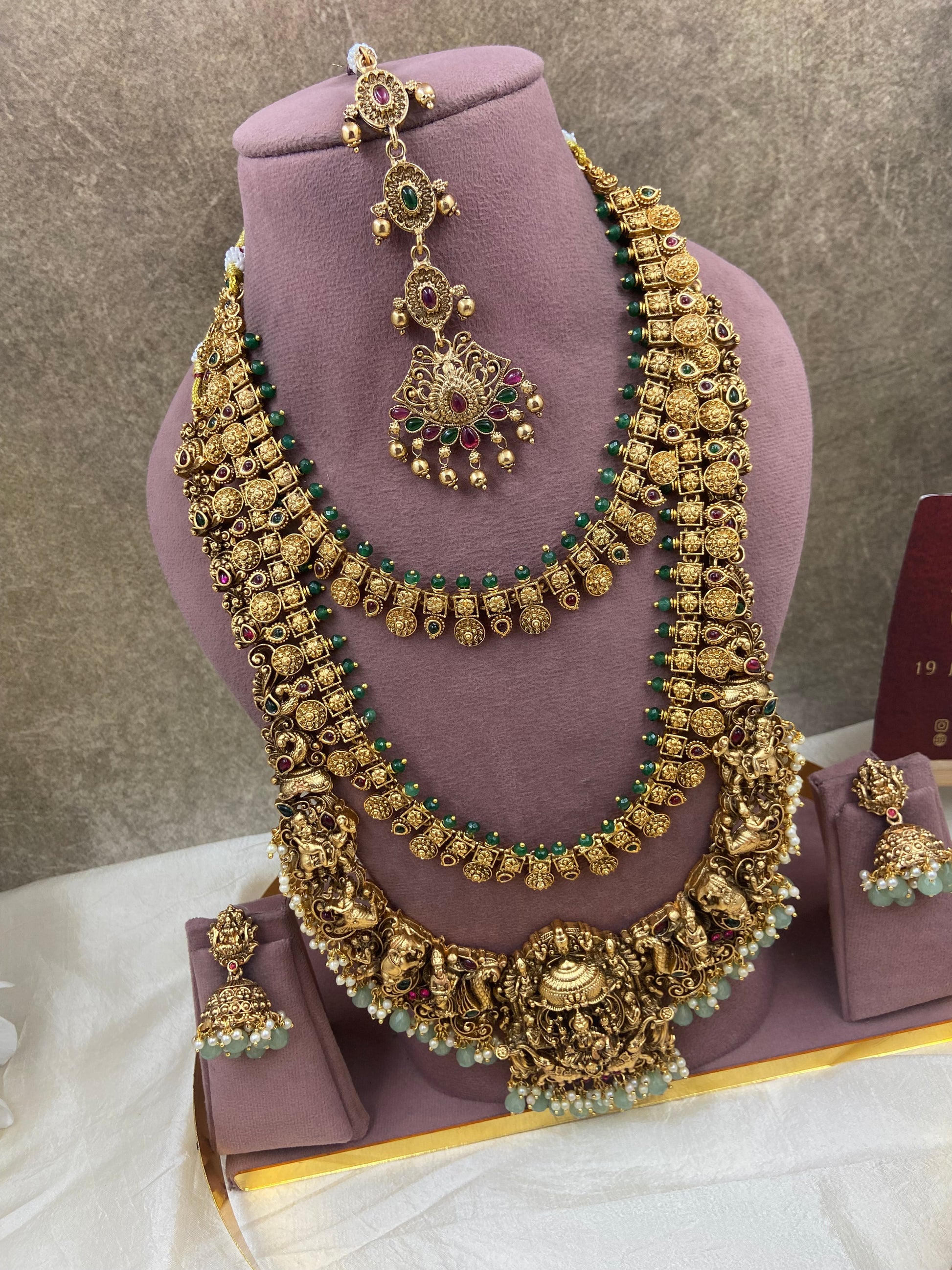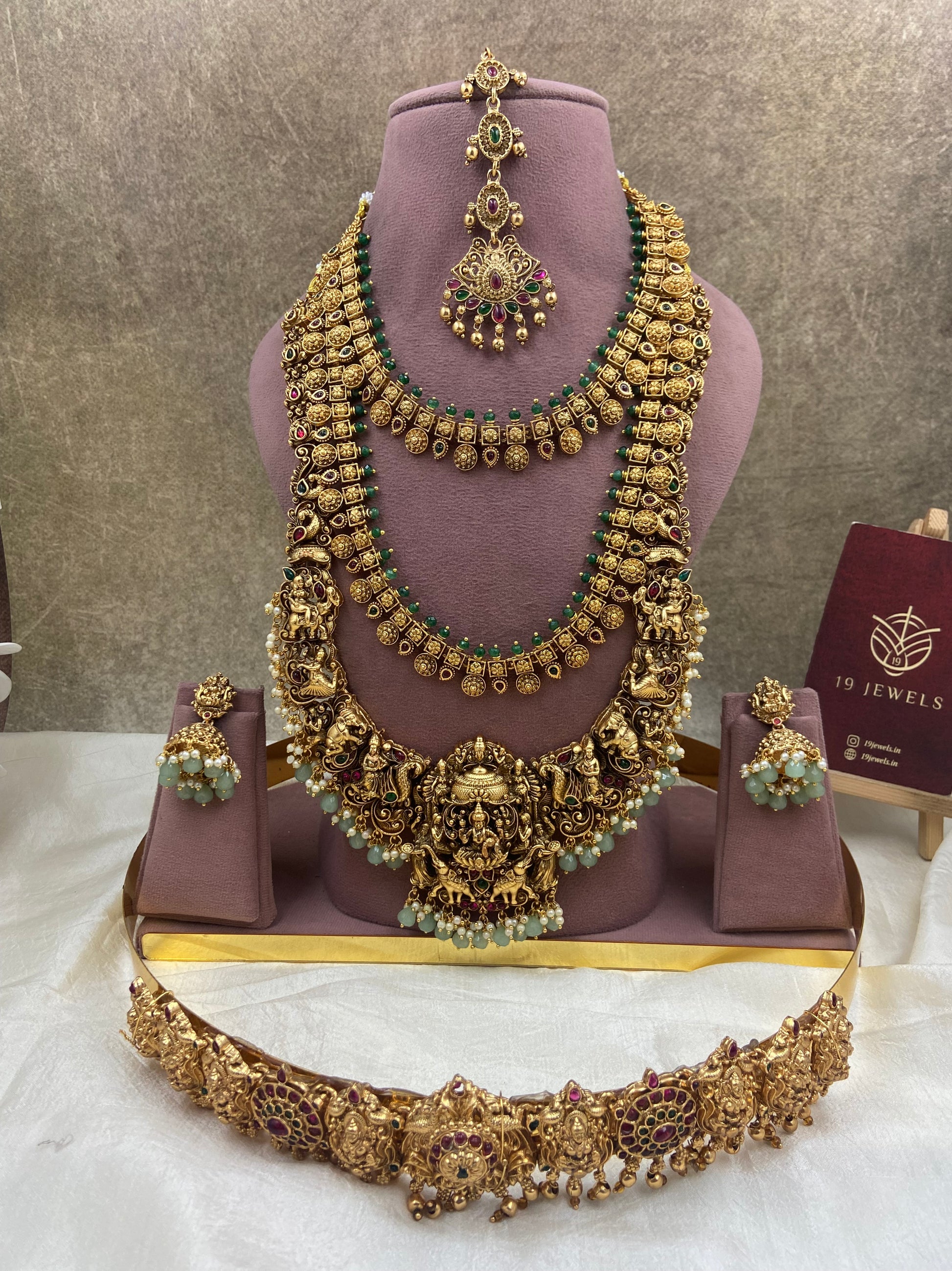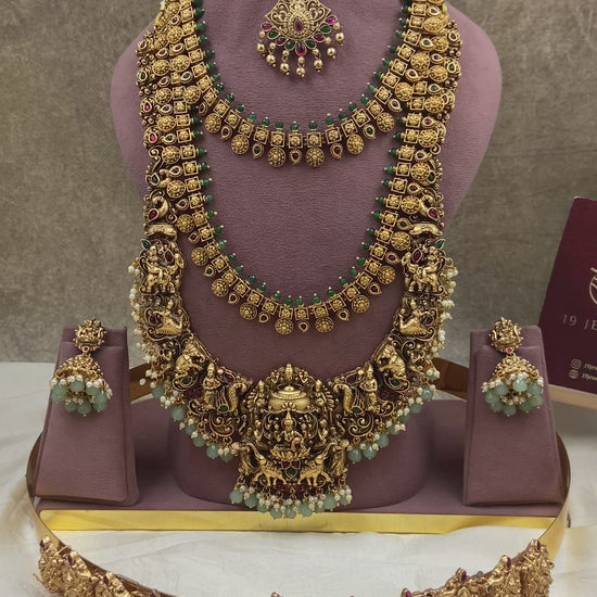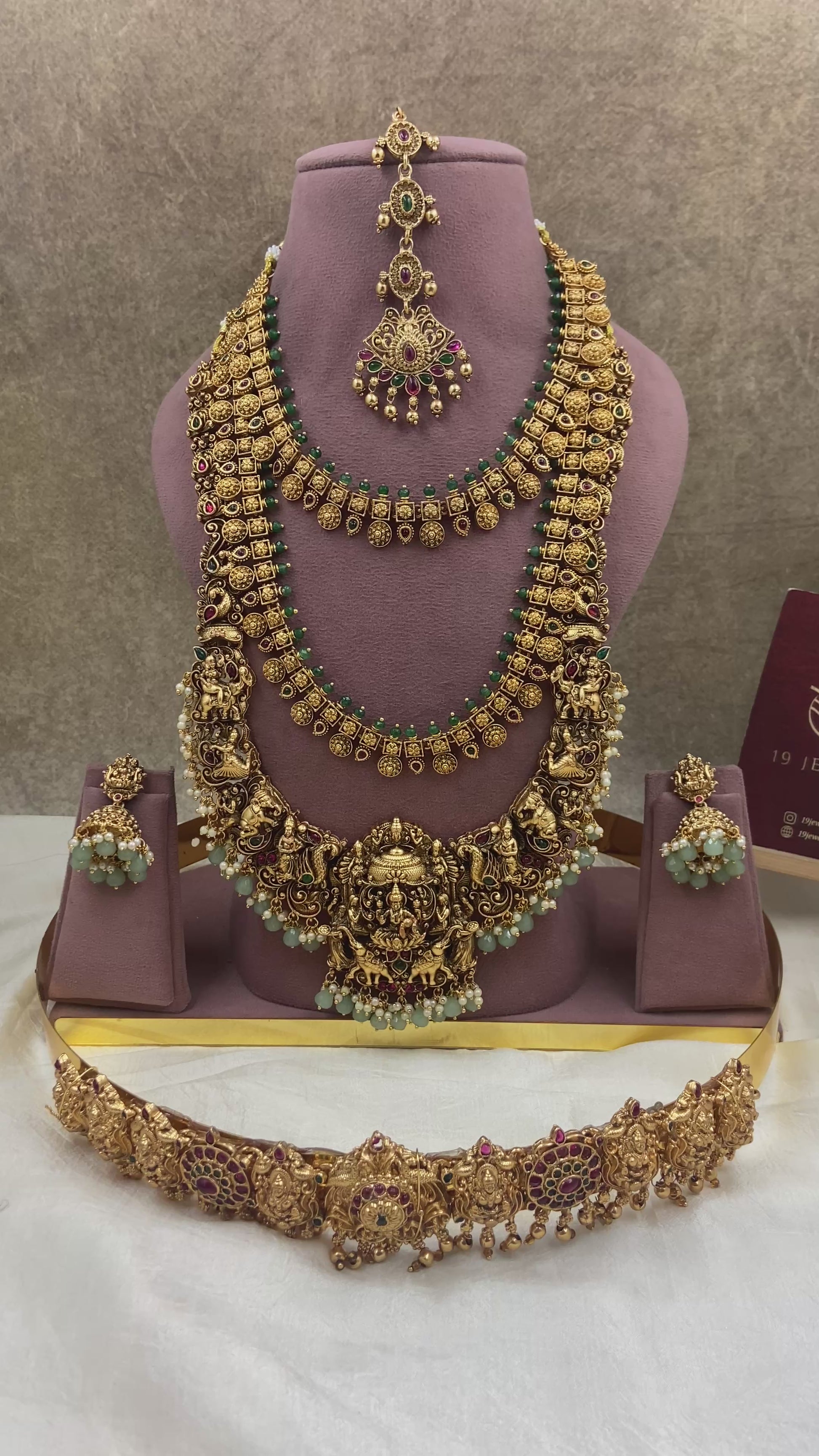 This semi bridal jewellery,combines elegant craftsmanship with a timeless design. Made with high-quality semi-precious gemstones, this piece is sure to add a touch of sophistication to any occasion. Stand out with this exquisite accessory, perfect for any bride or special event.